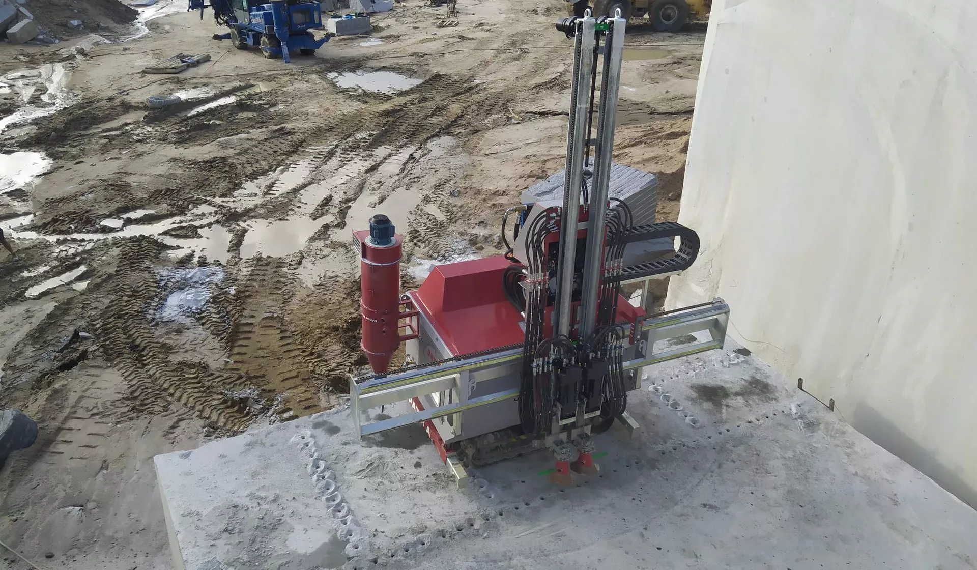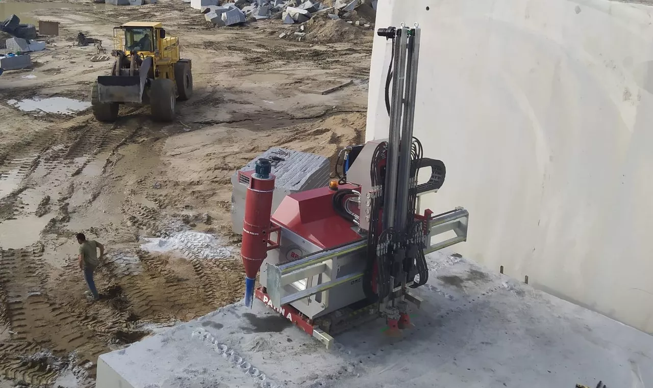 Banqueadora Hidráulica Automatizada sobre oruga, apta para el trabajo en canteras de Granito, Mármol o cualquier otra piedra natural.