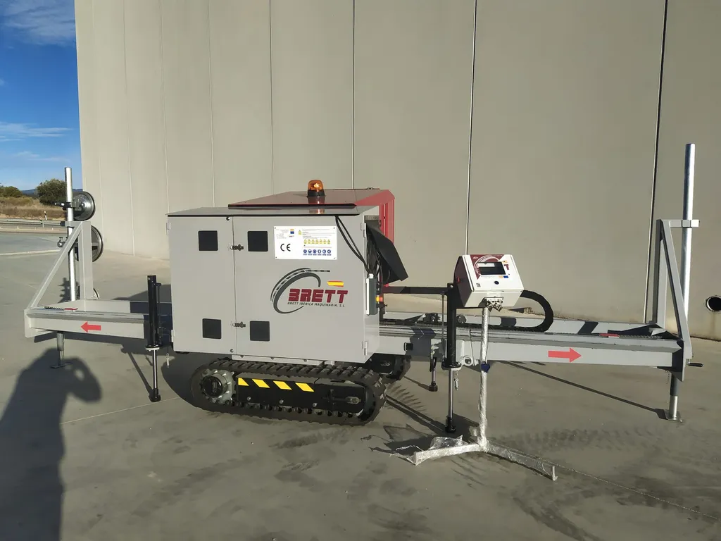 Máquina de corte con hilo diamantado auto transportada diseñada para pequeños cortes y despuntes de bloques.