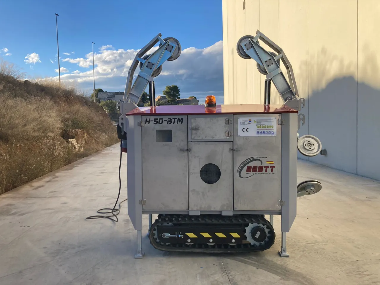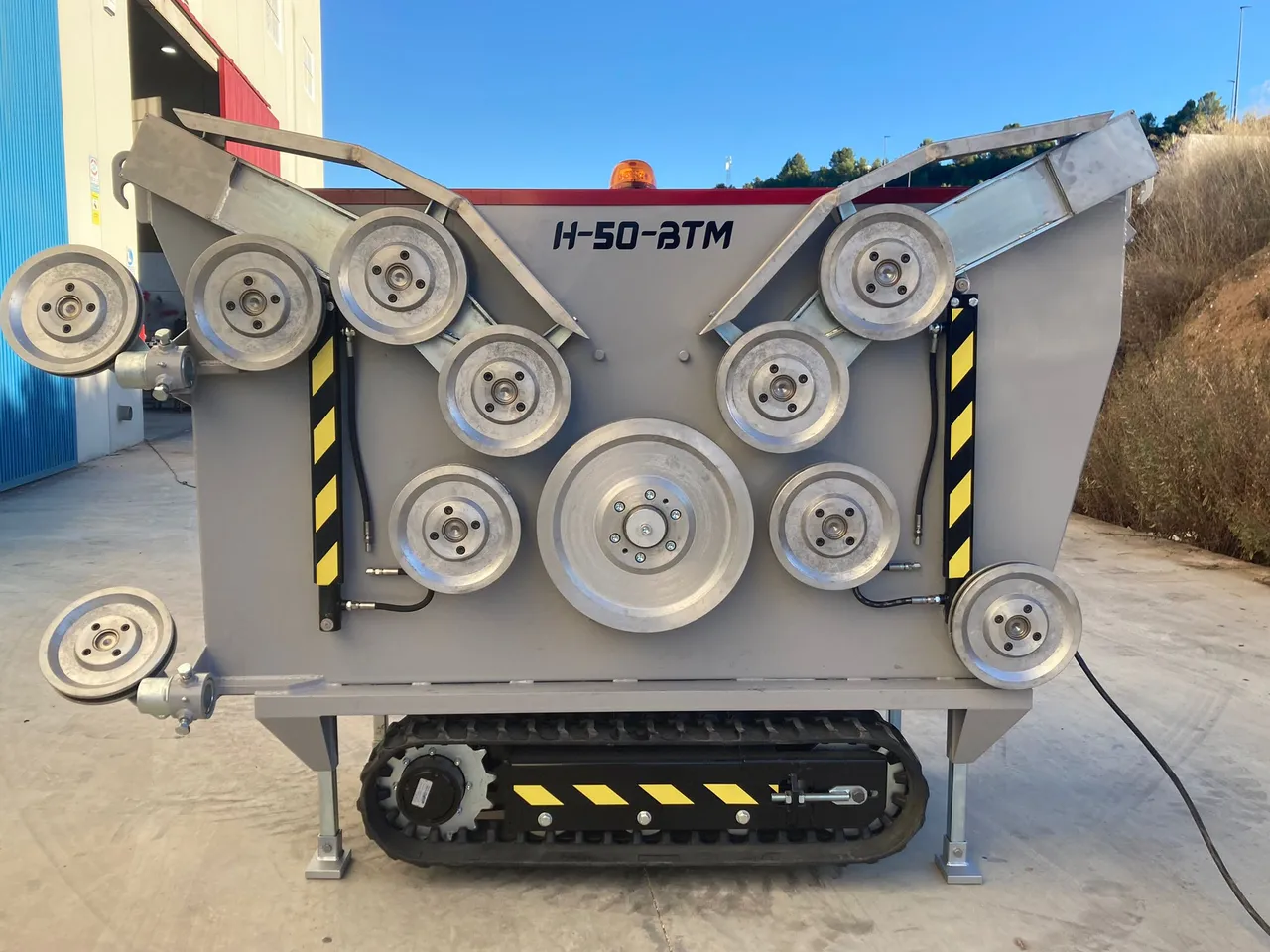 La Máquina de Corte con hilo diamantado H-50-BTM es un equipo auto transportado con mucha autonomía y diseñado para cortar todo tipo de piedras y hormigón. Con un novedoso diseño, compacto y robusto, incorporando un sistema de poleas direccionables que le permite realizar cortes en cualquier dirección.