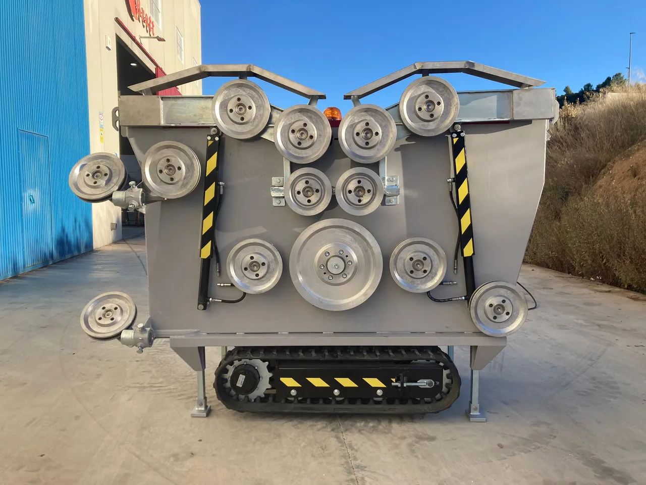 Este equipo de corte cuenta con un sistema de tensado del hilo mediante poleas direccionables lo que le permite realizar cortes en lugares de poco espacio, su movilidad y versatilidad la convierten en un equipo ideal para trabajar en minería subterránea, galerías y obras civiles.